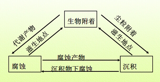 冷凝器腐蝕問題 u 腐蝕形成原因: 腐蝕是指通過化學(xué)或電化學(xué)反應(yīng)使金屬被消耗破壞的現(xiàn)象。冷卻水中的溶解氧與設(shè)備接觸形成腐蝕電池,發(fā)生如下反應(yīng),促使金屬不斷溶解而被腐蝕。 u 腐蝕控制: 向循環(huán)水中投加較低量,適應(yīng)系統(tǒng)水質(zhì)的復(fù)合緩蝕劑,即能使設(shè)備腐蝕控制在標(biāo)準(zhǔn)規(guī)定范圍。對于碳鋼不銹鋼系統(tǒng),優(yōu)選阻垢緩蝕劑配方時,即已復(fù)配入配方中,能解決設(shè)備腐蝕問題,如果系統(tǒng)中有銅設(shè)備,則應(yīng)另添加緩蝕劑,如恒古HG-301系列。 |